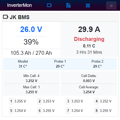 If you have a JK BMS + JK RS485 adapter + USB->TTL adapter, simply wire them up correctly and plug it in to the computer. The app will try to connect to the BMS via serial port by default at address /dev/ttyUSB0. If your USB->TTL device is mounted at a different device path, simply update the appsettings.json file with the correct path like so: